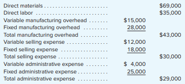 4. With respect to cost classifications for predicting cost behavior: a. What is the total variable manufacturing cost? b. What is the total fixed cost for the company as a whole? c. What is the variable cost per unit produced and sold?