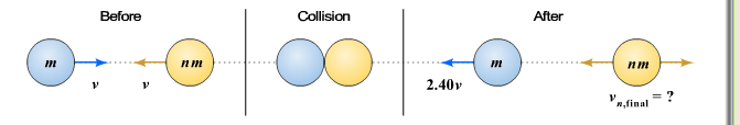 m, and the mass of the other particle is nm, where n is just a