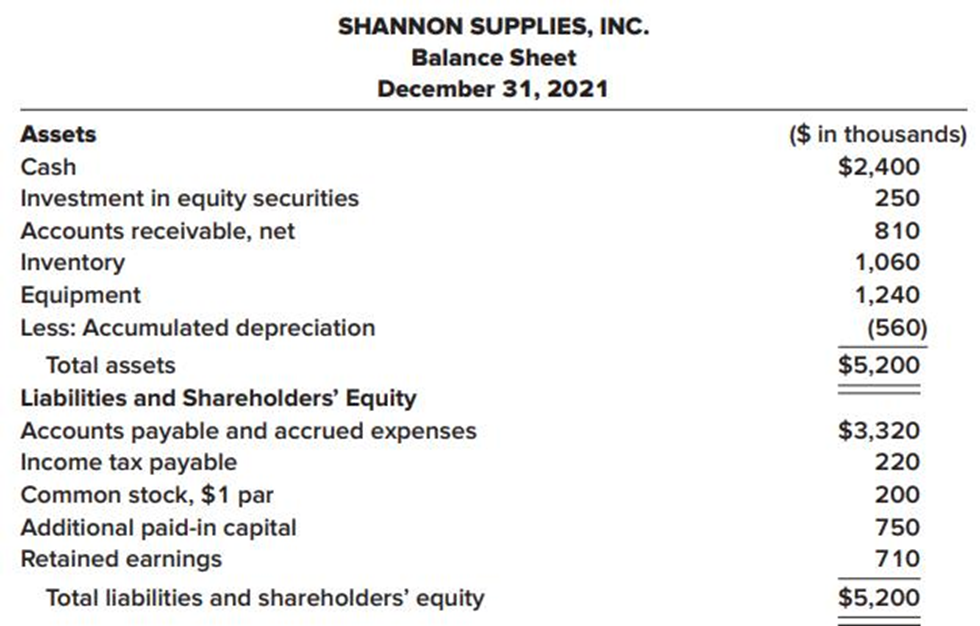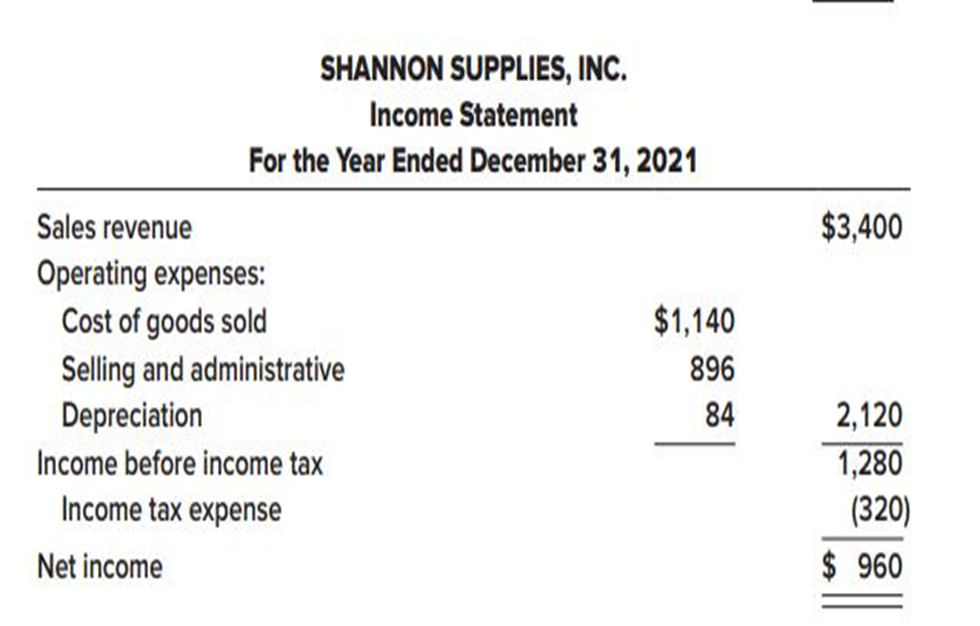 You are internal auditor for Shannon Supplies, Inc., and are reviewing the company’s preliminary financial statements. The statements, prepared after making the adjusting entries, but before closing entries for the year ended December 31, 2021, are as follows: