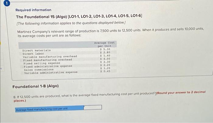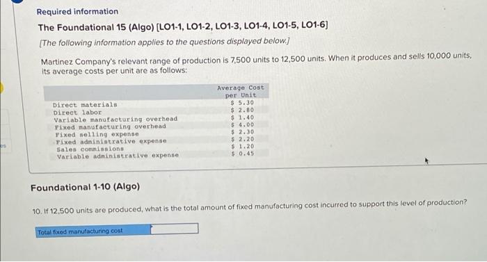 Munchak Company’s relevant range of production is between 9,000 and 11,000 units. Last month the company produced 10,000 units. Its total manufacturing cost per unit produced was $70. At this level of activity the company’s variable manufacturing costs are 40% of its total manufacturing costs.
