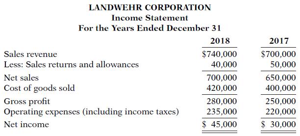 (b) Based on the ratios calculated, discuss briefly the improvement or lack thereof in financial position and operating results from 2017 to 2018 of Landwehr Corporation.