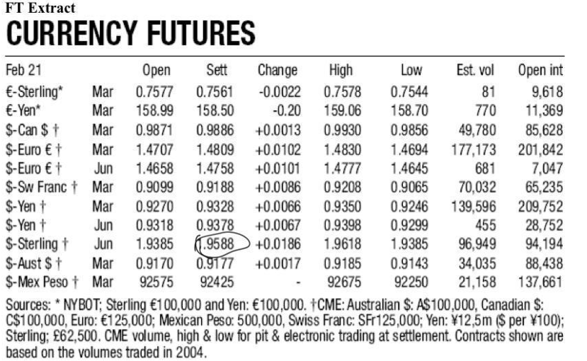 Assume today is the 21st of February. Using the information below, FT Extract, answer the following questions (parts i and ii). You work for a US company that is due to receive £250 million in June (you are a US exporter). You, as a treasurer of the company, have decided to use currency futures to hedge the currency exposure risk of this transaction.