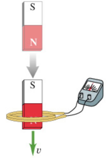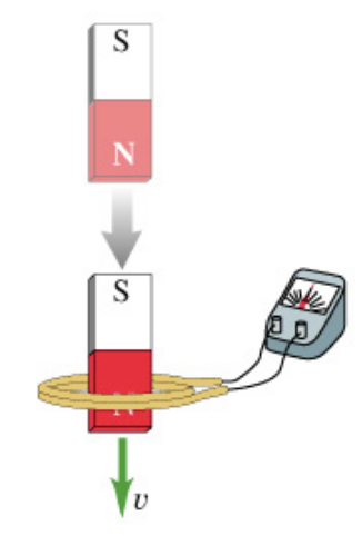 When a magnet is plunged into a coil at speed v, as shown in the figure, a voltage is induced in the coil and a current flows in the circuit. (Figure 1)