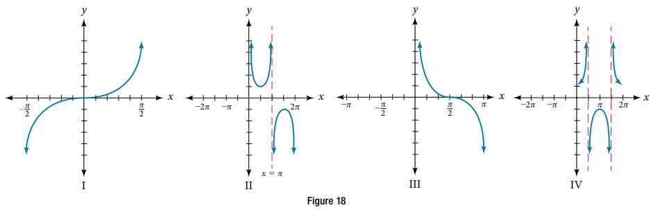 For the following exercises, match each trigonometric function with one of the graphs in Figure 18.