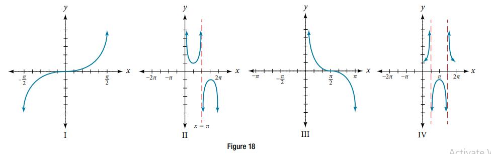For the following exercises, match each trigonometric function with one of the graphs in Figure 18.