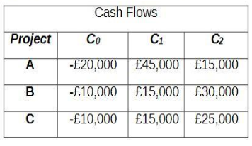 b. If there is a capital constraint in place which limits spending to £10,000, which project or projects should be selected? Support your answer with calculations.